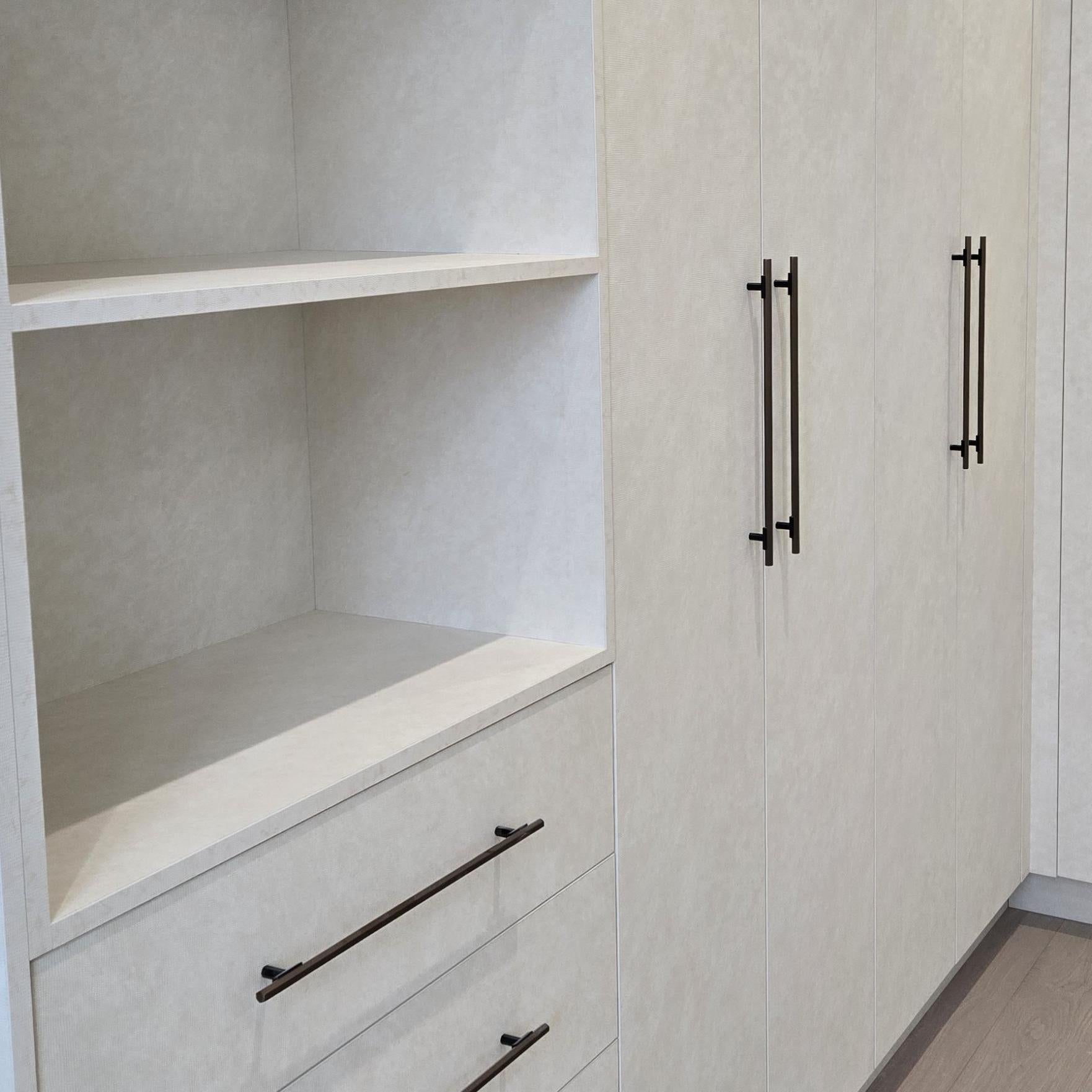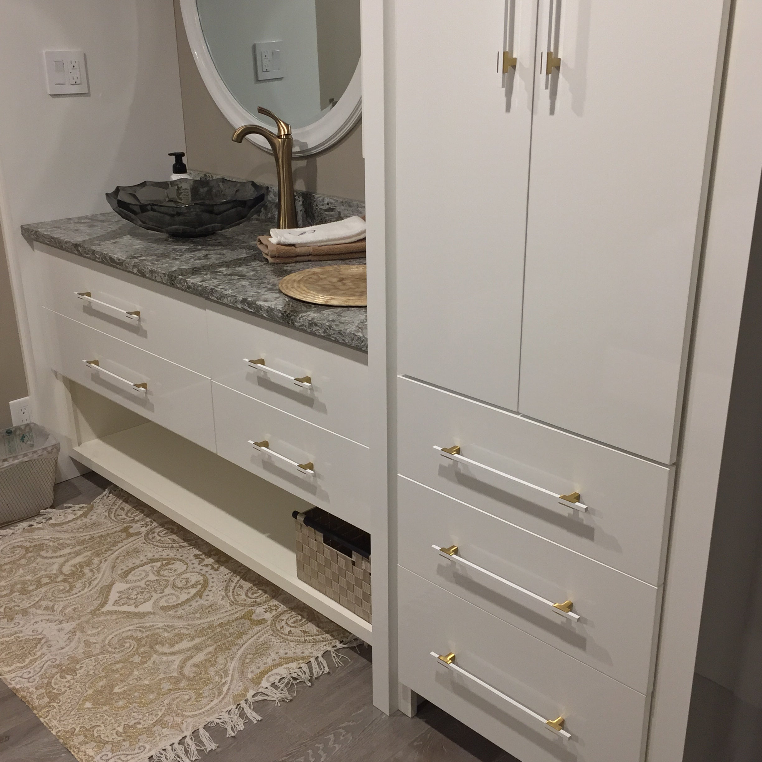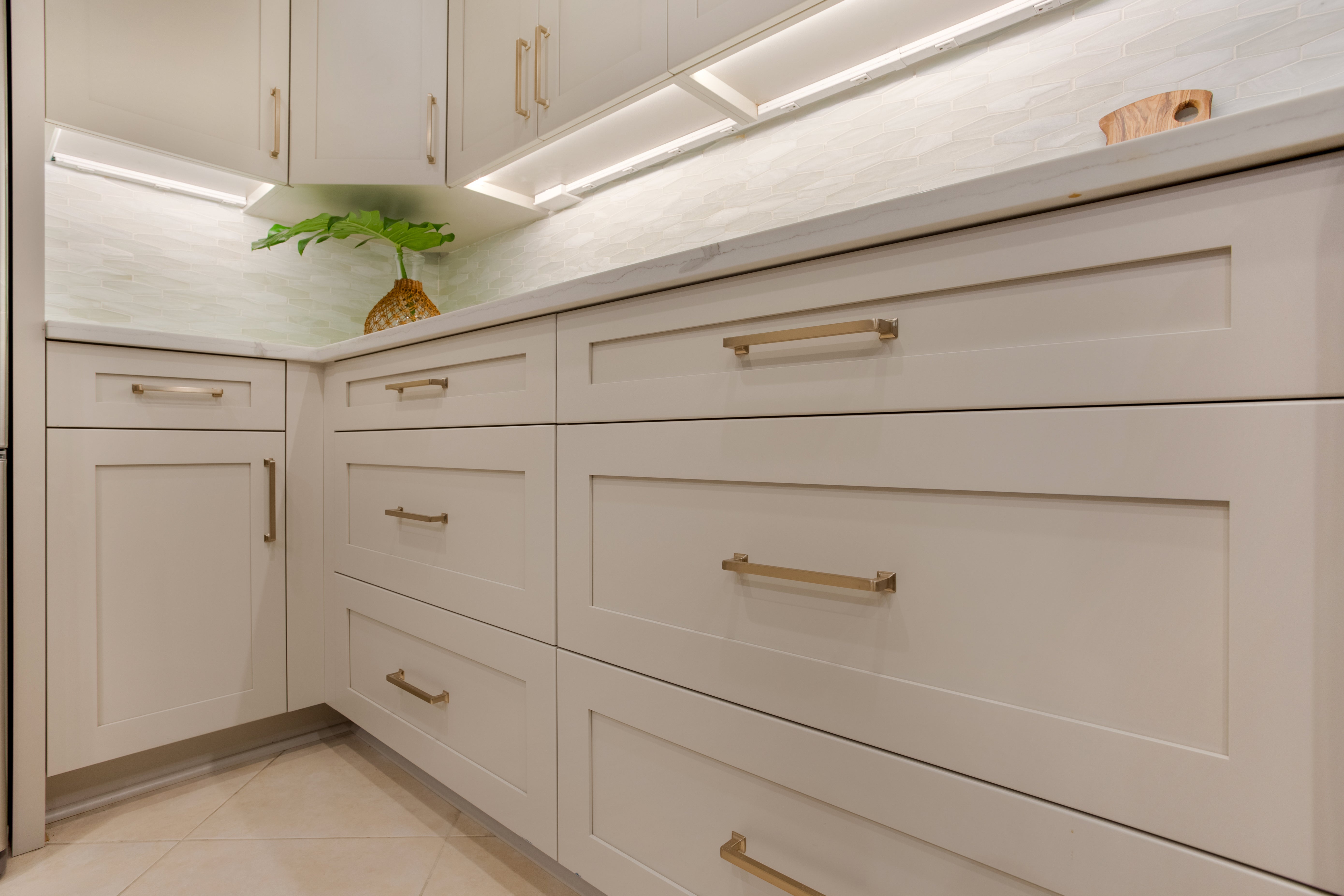 Minimalistic cabinets with flat-front panels call for simple, geometric handles or edge pulls which can uphold a sleek and contemporary look.